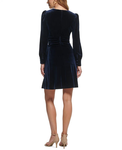 Velvet twist front v-neck fit & flare with long sleeves by Vince Camuto