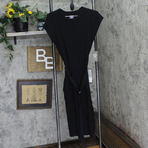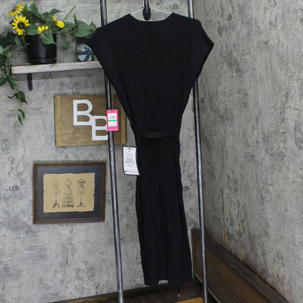 A textured knit lends a sleek finish to this form-fitting MIDI dress by Vince Camuto, cinched at the waist with an adjustable belt.