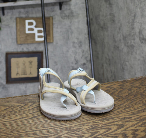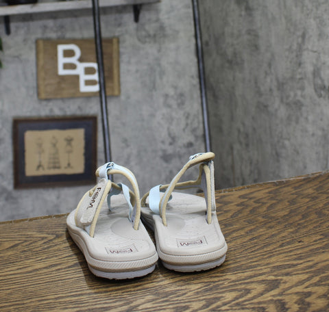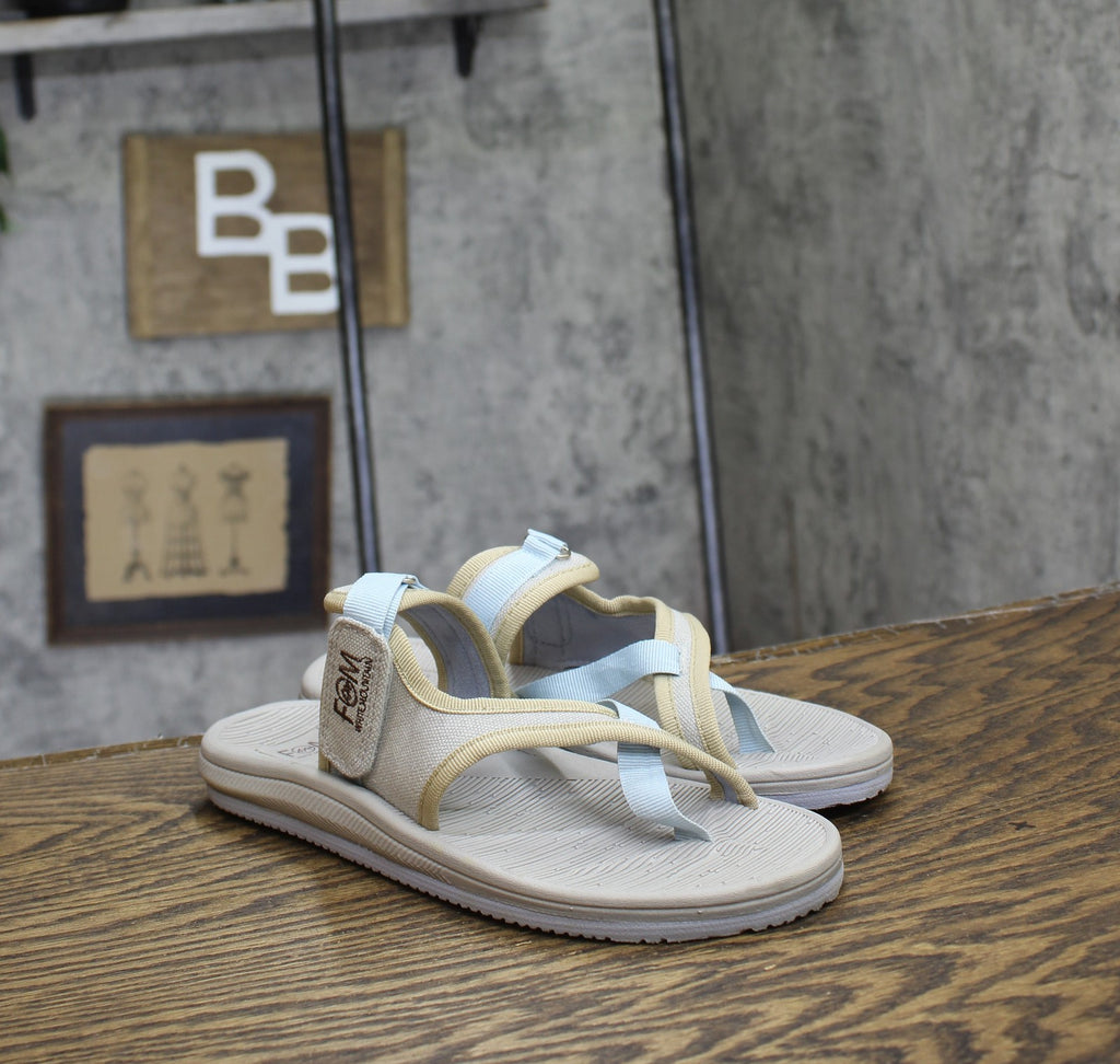 Cushioned foam insole hook and loop adjustable strap criss cross thong sandal Flexible outsole