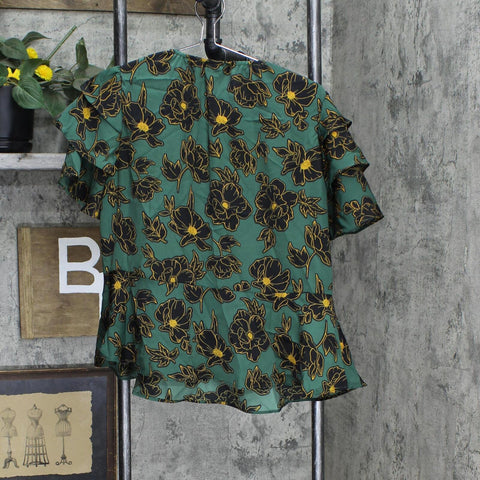 A sweetly accented blouse has tri-tiered ruffles for sleeves, a simple bow-tie neckline and figure-flattering peplum ruffle, stylishly emphasizing your waist and adding an ultra-feminine look to your wardrobe mix.