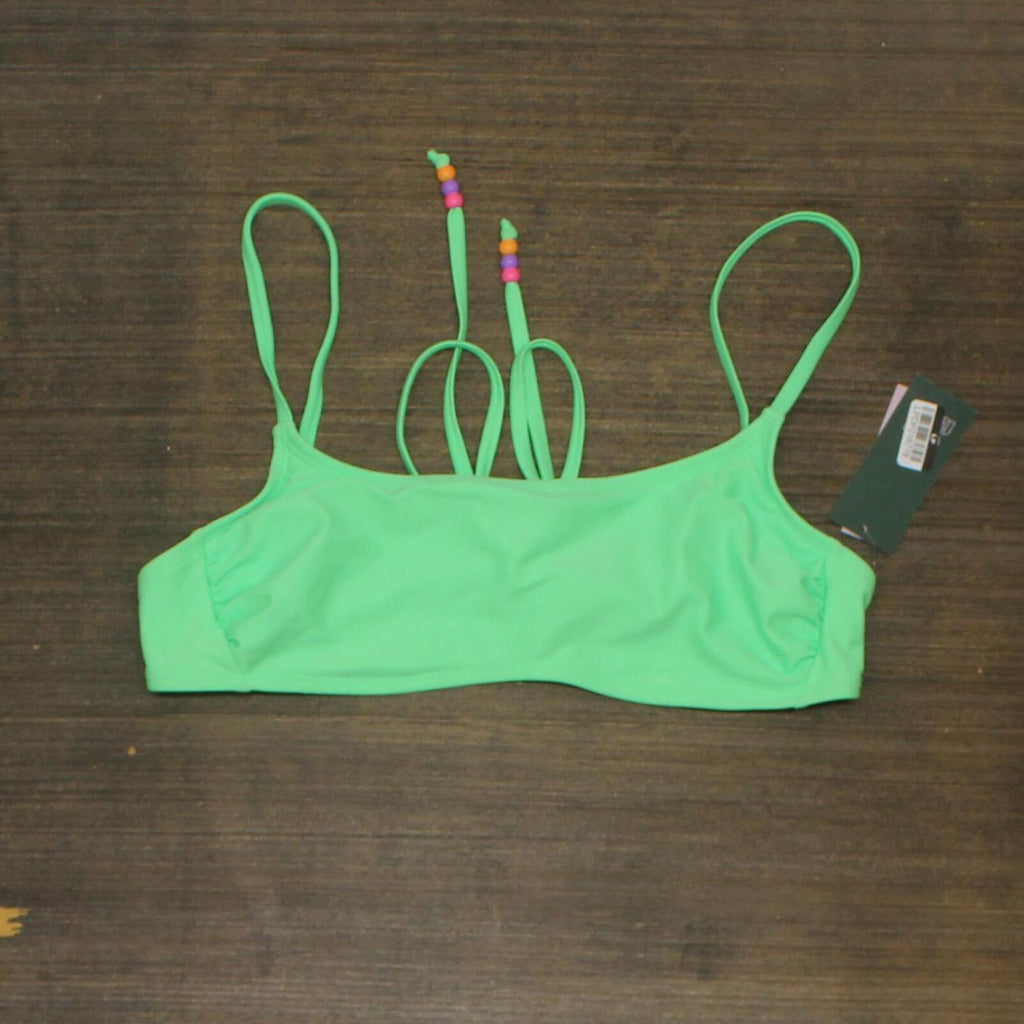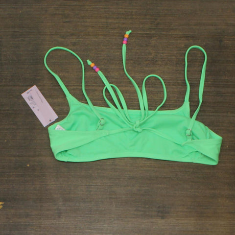 Solid-color bralette bikini top from Wild Fable. Made of a soft, stretchy fabric with removable cups. Slender shoulder straps with buckles and crisscross back strings that wrap around and knot at the front provide an adjustable fit. Colorful beaded accents on the strings complete the look with a stylish touch. Wild Fable: A look for every story.