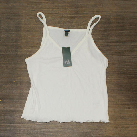 V-neck tank top with a rib-knit texture and spaghetti straps. In a close cut for a slim silhouette and finished off with a two-button closure on the bust for added interest.