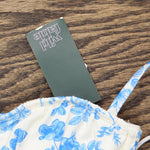 Corset-style bikini top from Wild Fable covered with floral print in blue hues for an appealing look. Soft and stretchy fabric and soft fabric lining offer flexibility and comfort, and adjustable straps lend a snug fit. Removable cups provide customizable coverage. Wild Fable: A look for every story.