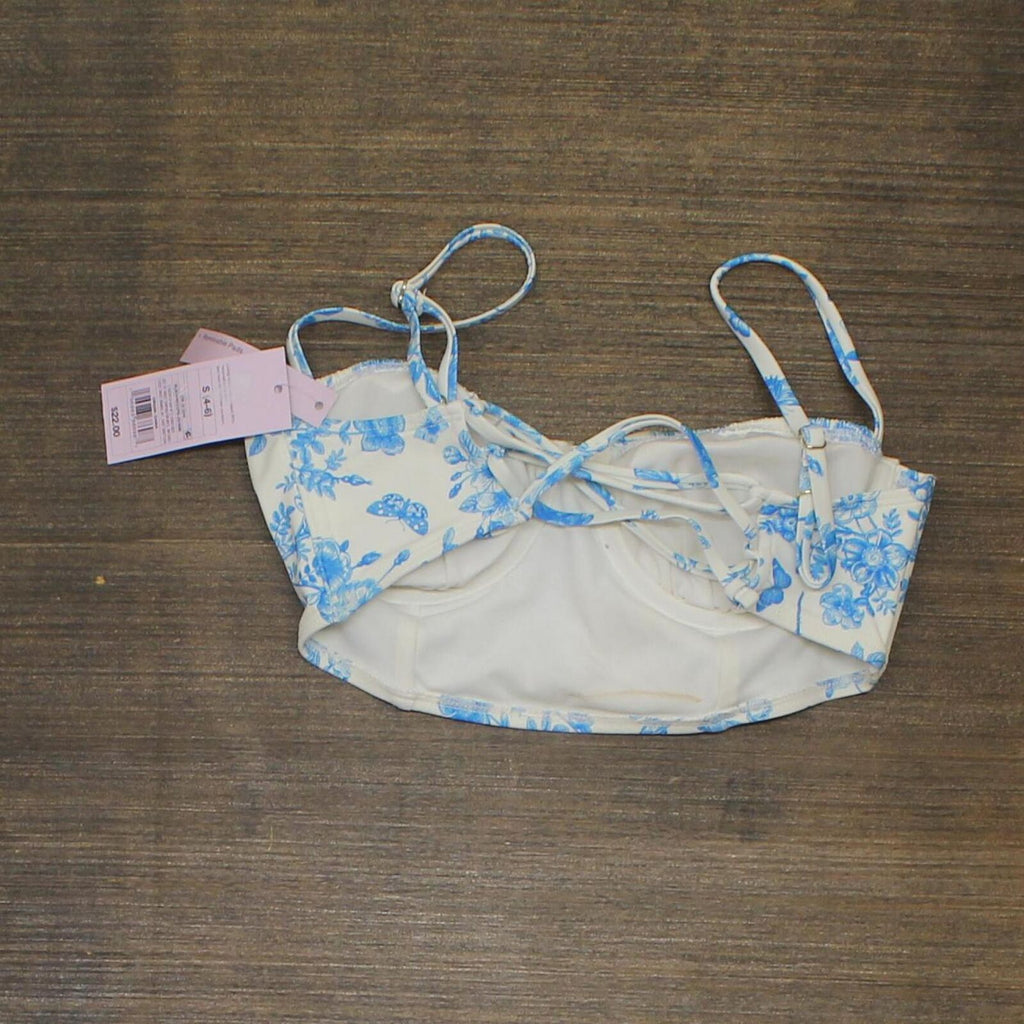 Corset-style bikini top from Wild Fable covered with floral print in blue hues for an appealing look. Soft and stretchy fabric and soft fabric lining offer flexibility and comfort, and adjustable straps lend a snug fit. Removable cups provide customizable coverage. Wild Fable: A look for every story.
