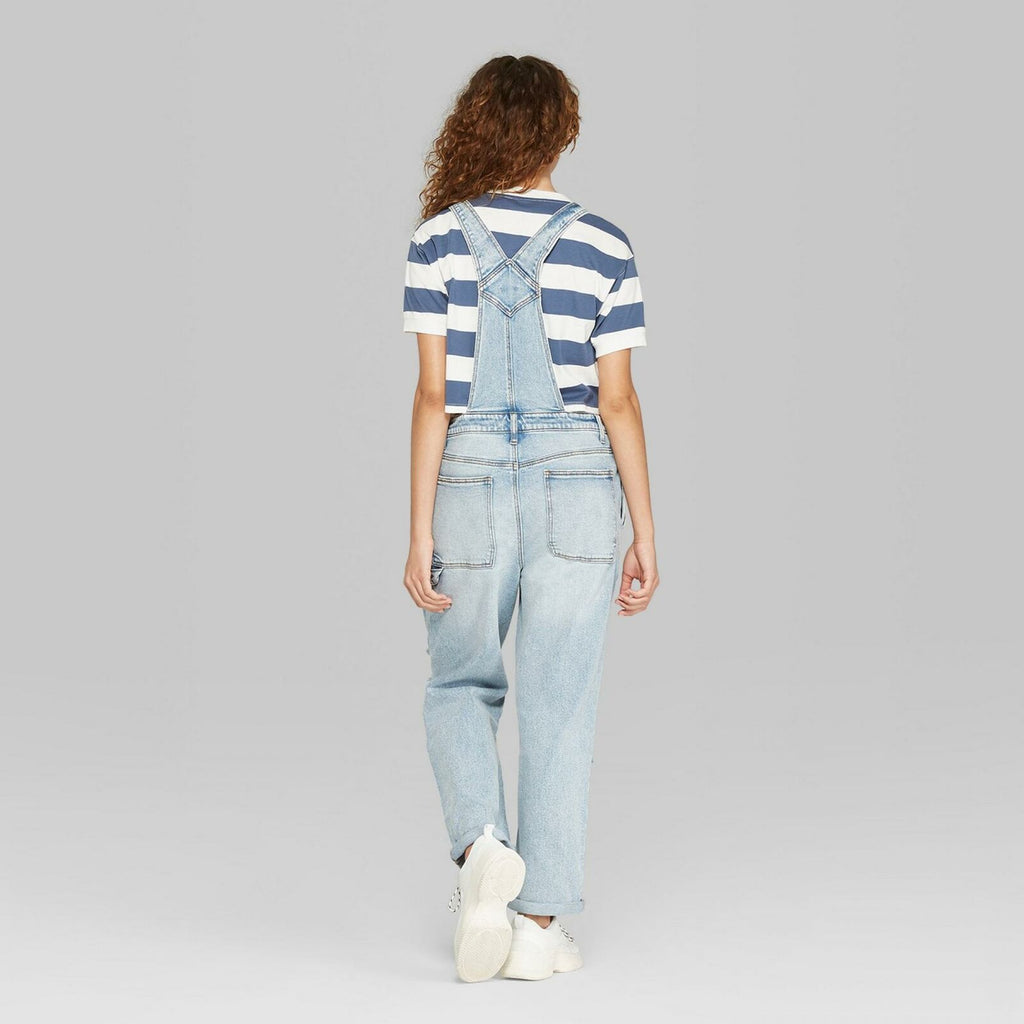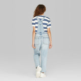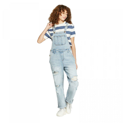 Light-wash overalls made from a cotton-blend fabric with a denim weave. Cut in a straight-fit silhouette, with adjustable straps for a sure fit. Completed with destructed detailing throughout.