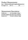 | Size | Width (in.) | Overall Length(in.) | Inseam (in.) |