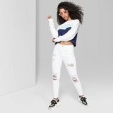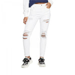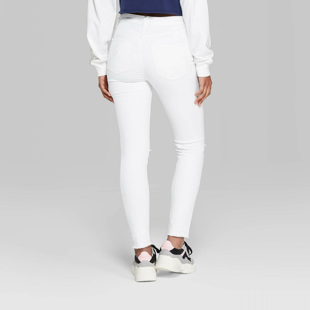 High-waisted skinny jeans in crisp white, made from a cotton-blend fabric for breathable wear. Finished with destructed detailing throughout.