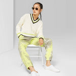 Printed high-rise sweatpants made from 100% cotton fabric and cut in a relaxed silhouette for comfortable wear. Fashioned with a tie-dye pattern in yellow, green and white. Finished off with side pockets and gathered cuffs.