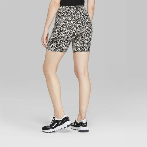Leopard-print bike shorts in black and white, made from a cotton-blend fabric for comfortable wear. Cut in a high-rise silhouette with a mid-thigh length.