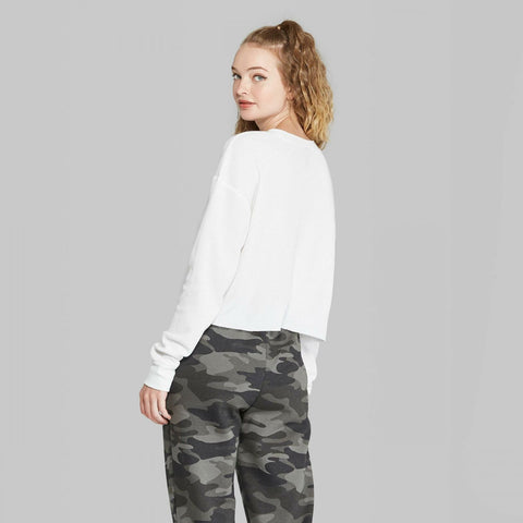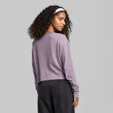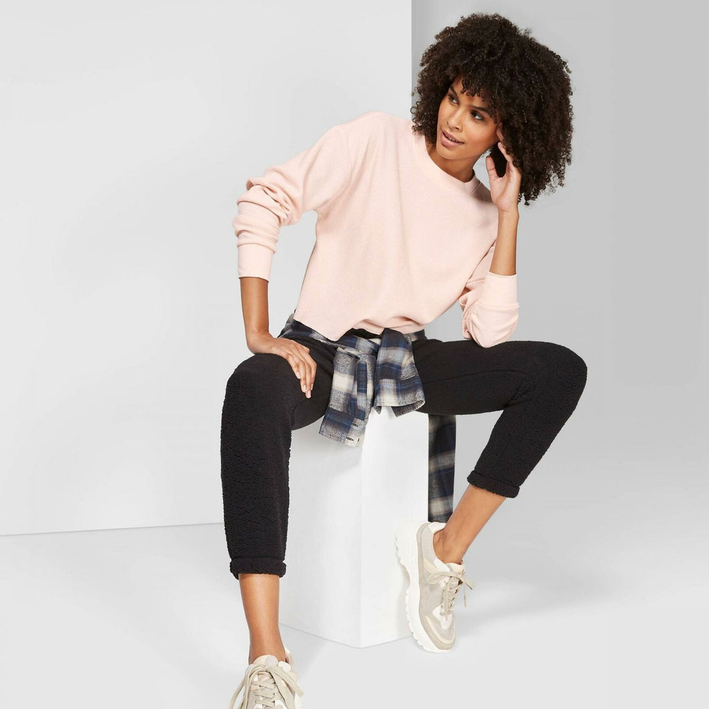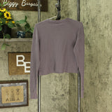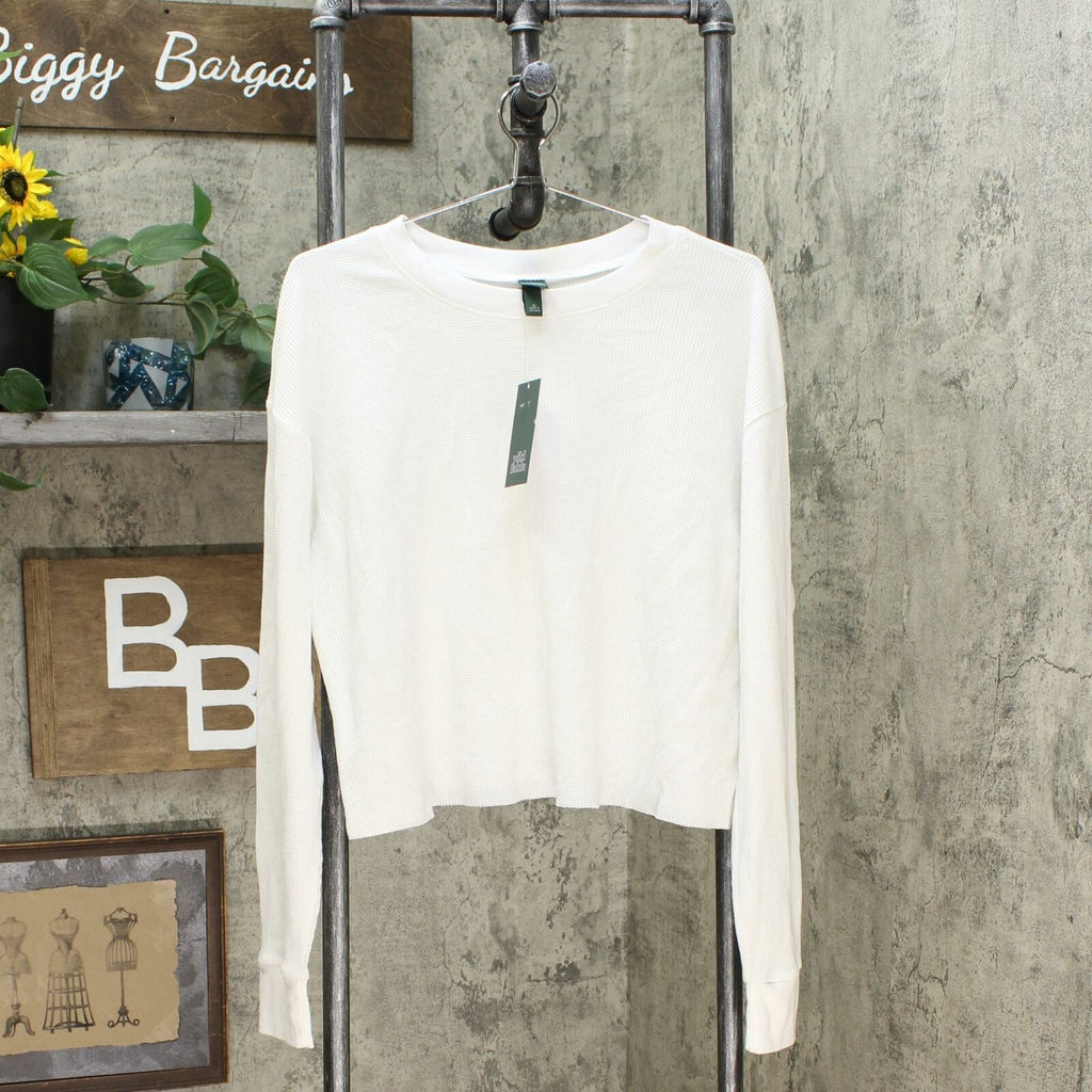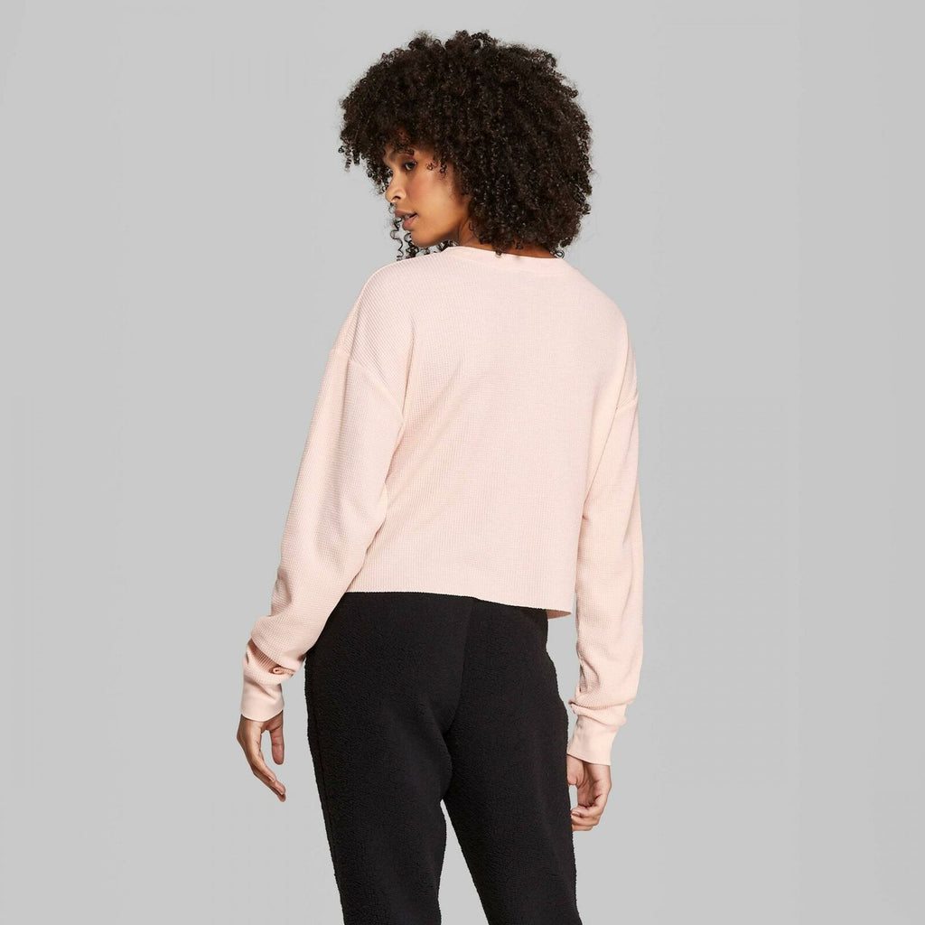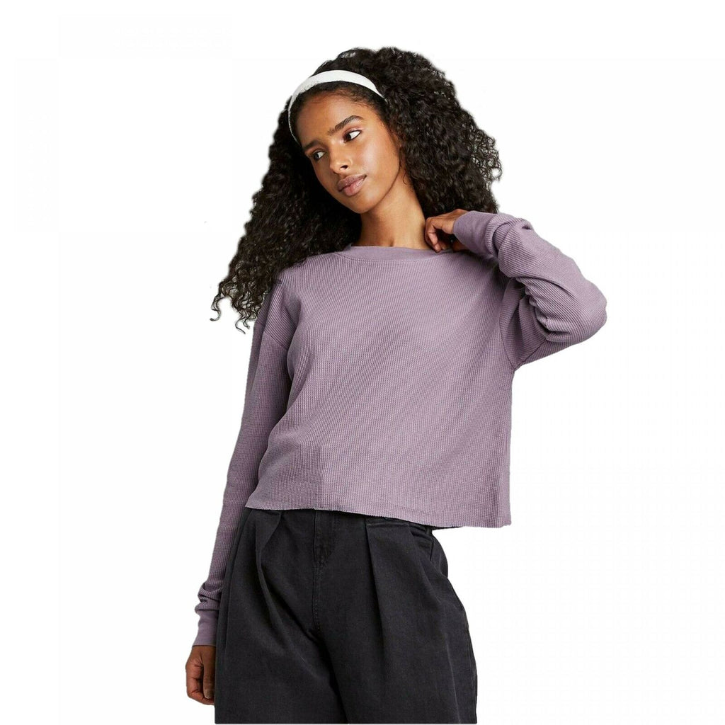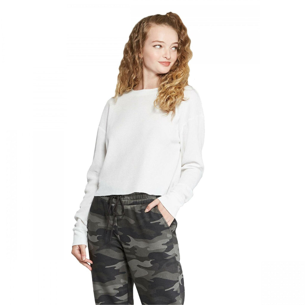 Long-sleeve boxy T-shirt made from a soft, thermal fabric for cozy warmth and all-day comfort. Fitted with a crew neckline and raw hem, with banded cuffs completing the look.