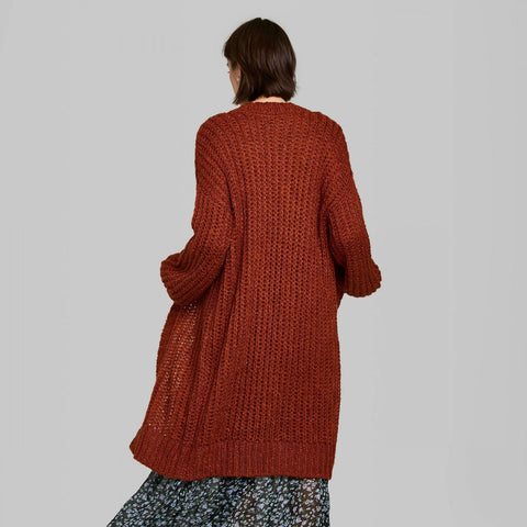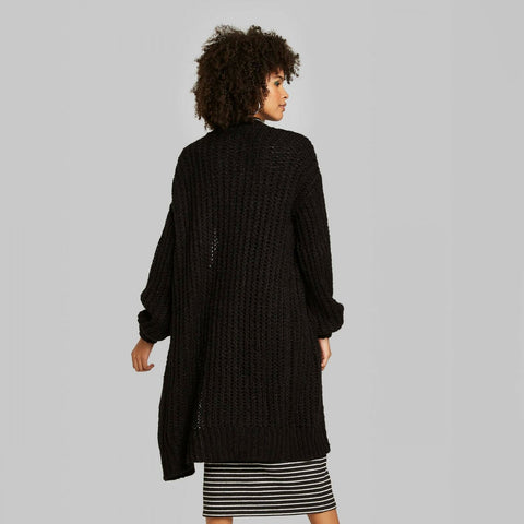 Long-sleeve open-front sweater designed with a knit construction for textural style. 100% acrylic offers comfort and softness, finished with a long length for a statement look.