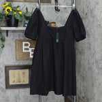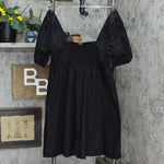 Short-sleeve mini dress made from a soft, lightweight fabric for breathable comfort, complete with a relaxed silhouette for ease of wear. Square neckline coordinates with square-cut back.