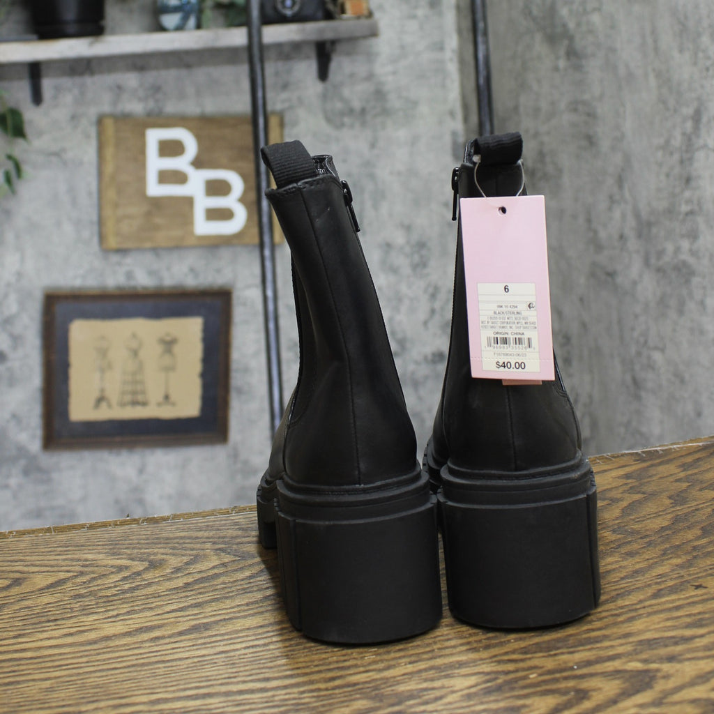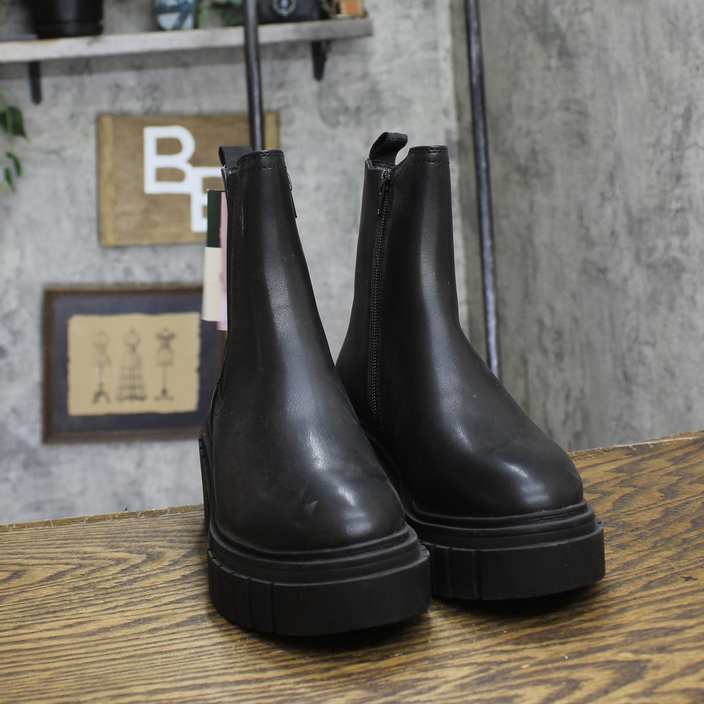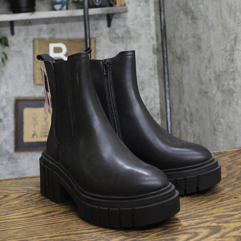Chelsea boots from Wild Fable in black. Designed in an ankle height with a cushioned footbed to keep your feet comfortable all day. Chelsea boots in black 5.5in platform heel Rubber and leather outsole Side zipper Medium width Sizing: Womens Care and Cleaning: Clean With Mild Detergent Footwear Insole Material: 100% Polyurethane Features: Pull-On Construction: Cushioned Footbed Footwear Lining Material: 100% Polyester Toe Style: Round Toe Height Type: Ankle Footwear Upper Material: 80% Polyurethane and 20% Polyester Heel: Approximately 5.5 Inches Platform Heel Footwear Outsole Material: 45% TPR (Thermoplastic Rubber) and 55% Leather Boot Shaft Circumference: Approximately 10.5 Inches Boot Shaft Height: Approximately 5.5 Inches Shoe Width: Medium Footwear toe openness: Closed Toe Footwear outsole details: Flocked Outsole