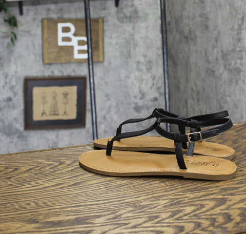 Understated in T-straps, the Wild Pair Krisleyy sandals dress up or down with sophisticated versatility.