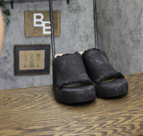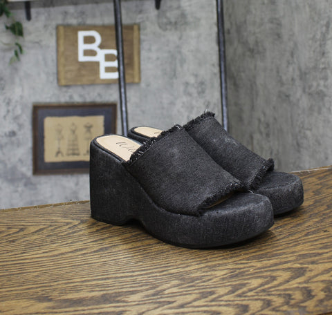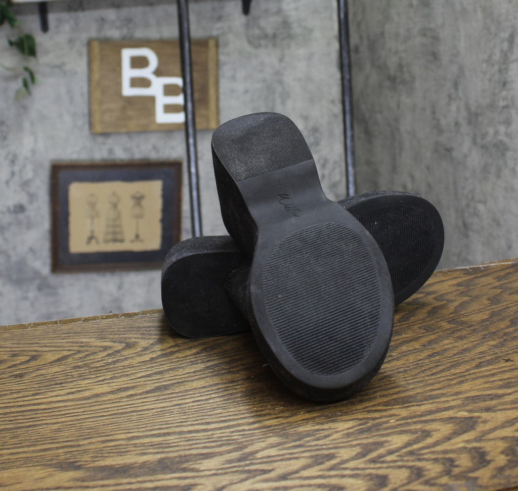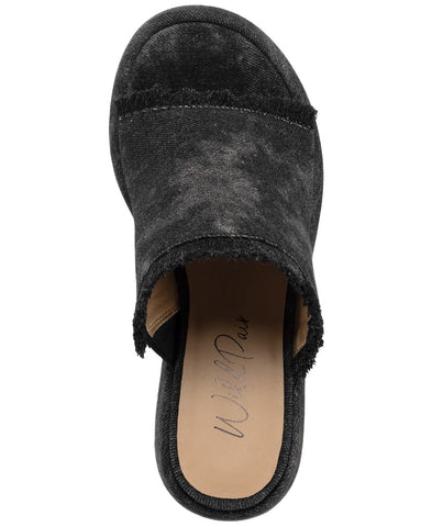 A simple slide silhouette tops chunky platform heels adding a must-have boost to warm-weather style in the Wild Pair Mahrshah sandals. Features Heel: 4"; platform: 1-1/2" Round toe Slip on Cushioned insole for added comfort Exclusive Upper: fabric; lining: fabric; sole: manmade Imported