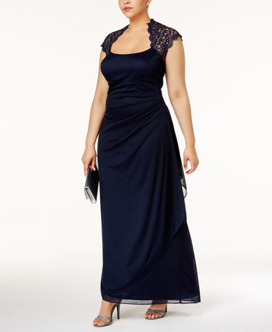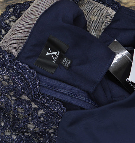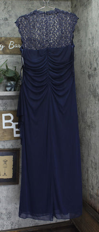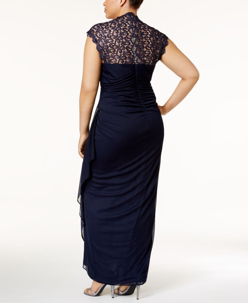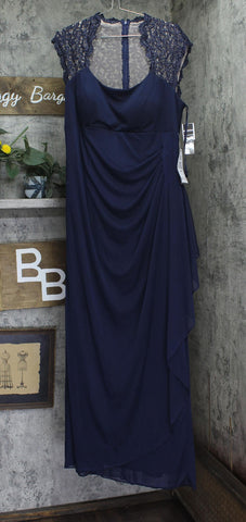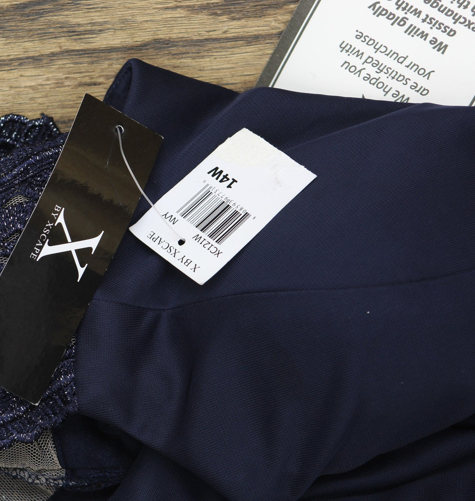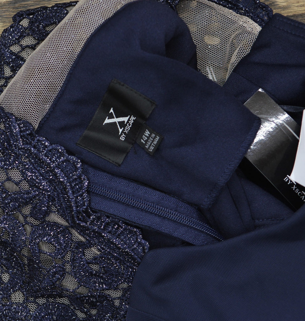 X By Xscape Plus Size Ruched Lace Gown Dress XC121W Navy Blue 14W