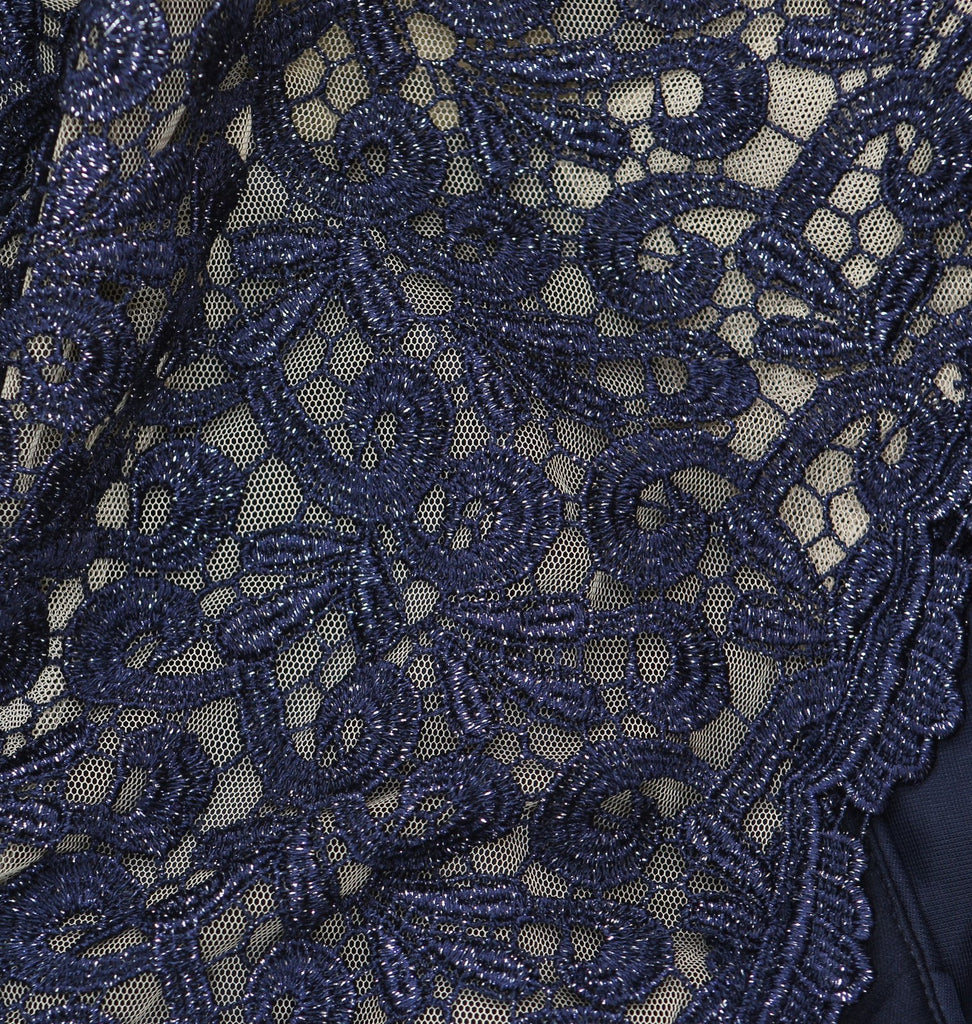 Discover effortless glamour with Xscape's lace-trim gown, complete with a flattering ruched silhouette. A slightly flared finish at the skirt drifts gently with every step.