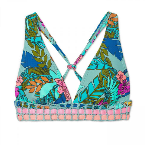 Head to the beach or pool with confidence and in style wearing the Crochet Trim Triangle Bikini Top from Xhilaration. This bikini top features a triangle cup design, complete with delicate crochet detailing for pops of style, and a crisscross back with tie lends a fun, beach worthy look. Made from a soft, nylon blend fabric for all day wear, this crochet bikini top also comes with soft, removable cups to help you find the perfect fit while providing coverage as needed. Pair it with crochet trim hipster bikini bottoms and a floppy hat for a sweet, summer look.