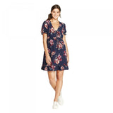 Sweeten up your day-to-day style for work or put together an outfit that's perfectly suited for date night with the Floral-Print Short-Sleeve V-Neck Tie-Front Dress from Xhilaration. This short-sleeve navy dress is blooming with burgundy and light pink florals for a simply delightful look, further enhanced with ruffles on the sleeves and hem as well as a tie detail accenting the V-neckline. You'll love the comfortable fit of a relaxed silhouette, along with elastic on the waistline that lends a touch of extra definition and shaping for a figure-flattering look. Keep things light and airy on a warm day when you wear this floral mini dress with strappy sandals, and then layer with tights, switch to ankle boots and add a leather jacket for cool-weather flair.