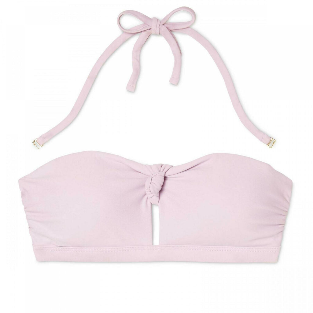 Sweeten up your sunny-day style with the Front-Knot Bandeau Bikini Top from Xhilaration. This bandeau swim top comes in a light shade of pink for a delightfully charming look, and it's accented with a knot at the front of the bust for added playful charm. You can wear the bikini top as a bandeau when you remove the straps, or leave them on for added support with a behind-the-neck tie closure. Sewn-in cups give you the comfort and coverage you need for confident wear in and out of the water, while UPF 50+ material helps shield you from harmful sun rays. Whether you're kicking back on sandy beaches to work on your sunkissed glow or simply lounging poolside with your gal pals, you'll love to coordinate this front-knot bikini top with the matching bottoms for a sweet swimwear look.