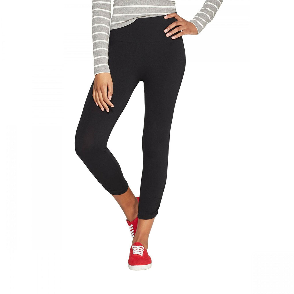 Update your casual wardrobe with a cozy essential the High-Waist Seamless Capri Leggings from Xhilaration. These black leggings are seamless for comfortable wear, while added spandex makes sure you can move easily as you hang out at home or run errands around town. Show off your favorite footwear with the cropped length and tuck in a tee, tank or sweater to complete the casual-cool look.