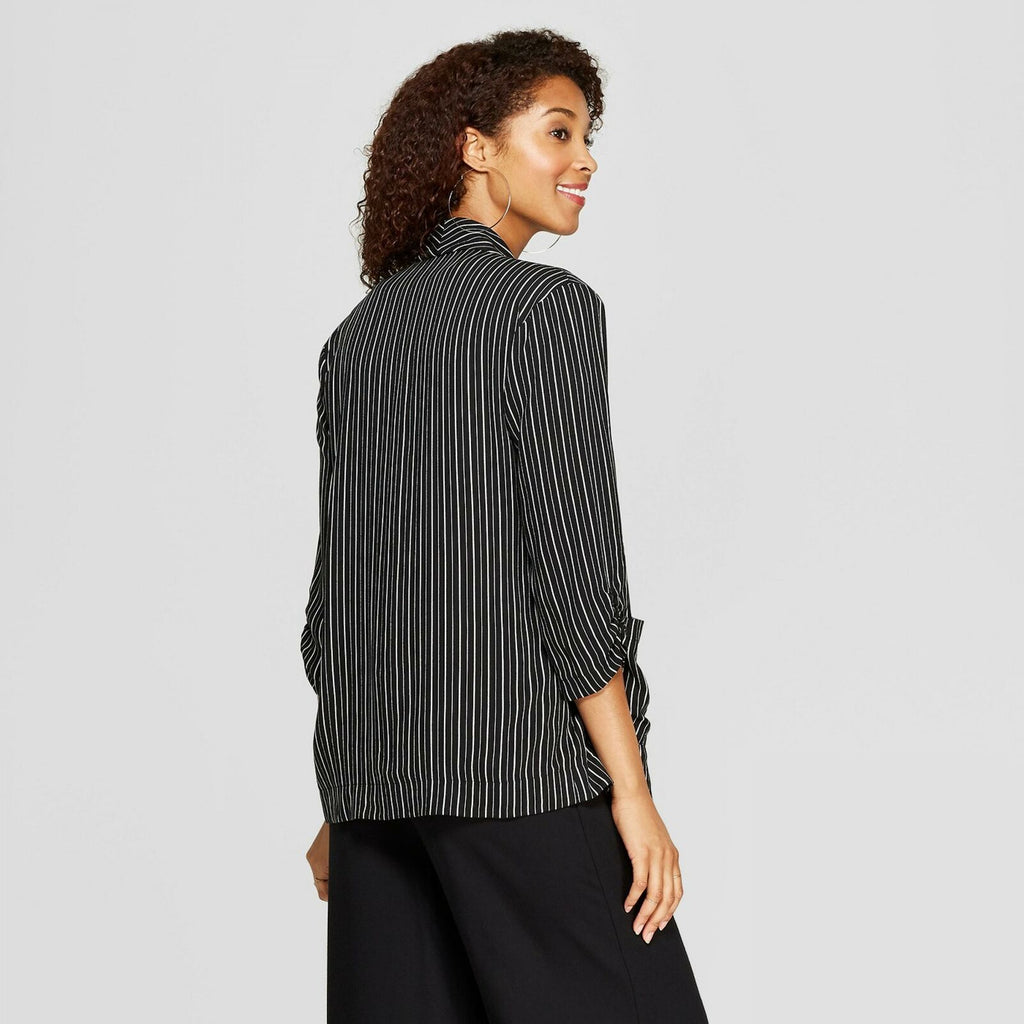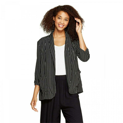 For the perfect mix of polished and laid-back style, put on the Long-Sleeve Soft Blazer from Xhilaration. With patch pockets and notched lapels, this open-front blazer has the classic elements of this timeless layering piece, but gets feminine finishing touches with the 3/4-length sleeves that feature subtle ruching. Layer over your graphic tee and jeans to dress up a casual look, or add to a sleeveless blouse and trouser for a comfortable work ensemble.