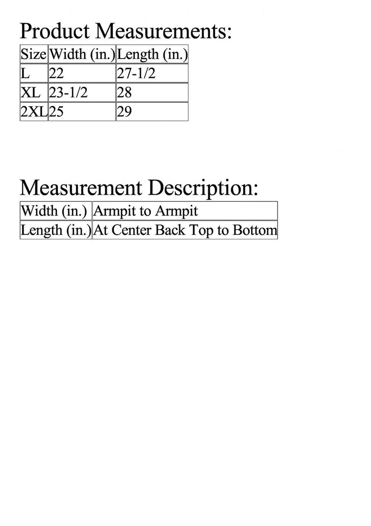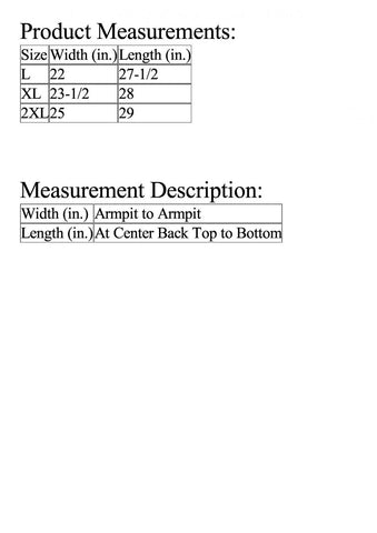 | Length (in.) | At Center Back Top to Bottom |