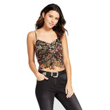 All eyes will be on you when you're dolled up in the sassy-sweet style of this Mesh Ruched-Front Tank Top from Xhilaration. This V-neck mesh top makes an eye-catching statement with its allover floral pattern, midriff-baring style and ruched front -- fitting right in with your feminine style while adding touches of flirty flair. Whether you're off to see your favorite band, getting ready for date night or hitting the town with your girls, you can style yourself a myriad of looks with this top. Wear white high-rise denim shorts and platform sneaks on a warm day, and then switch to distressed skinny jeans and lace-up heels for a night out.