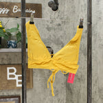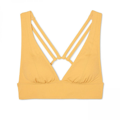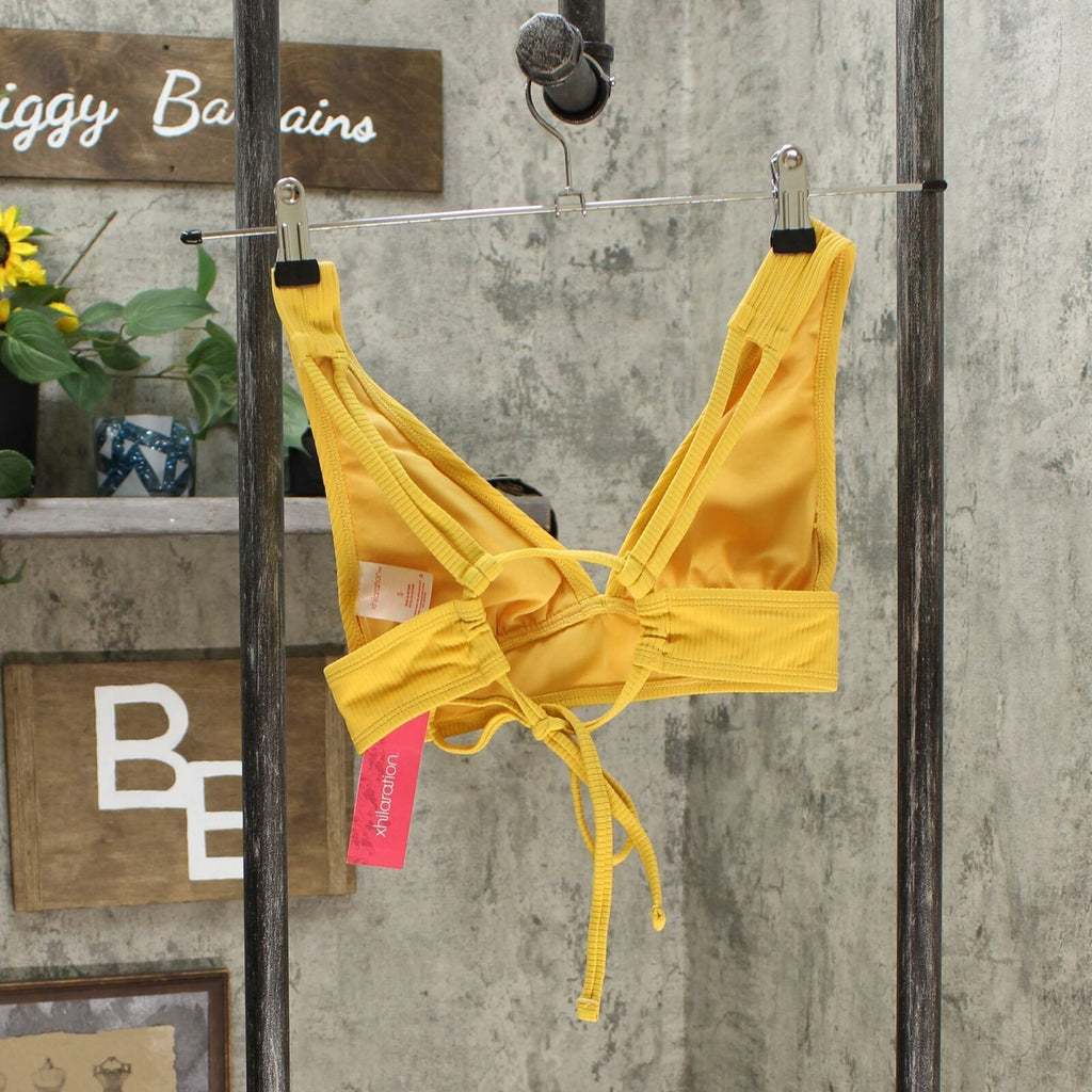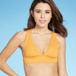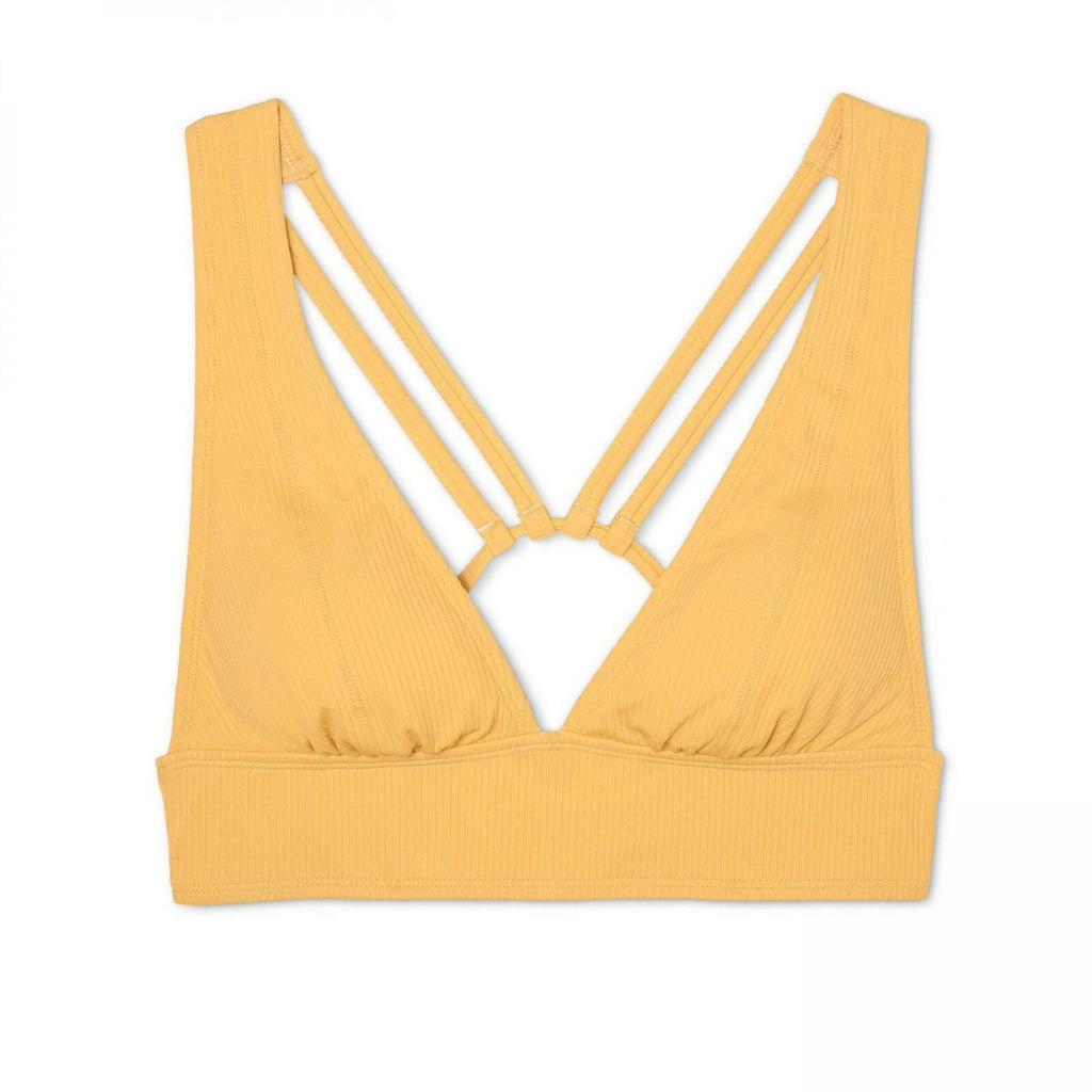 The Ribbed-Texture High Triangle Bikini Top from Xhilaration brings sunny style to your swimwear options. In a warm shade of honey yellow, this V-neck bikini top brightens up your beach-day look, and the ribbed texture adds dimension. Wear with coordinating bottoms for a cohesive look, or pair with floral-print swim shorts to create a look all your own.
