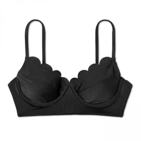 Make your mark at the beach or pool in the Scallop Underwire Bikini Top from Xhilaration . This stylish bikini top offers support with the built-in underwire and adjustable shoulder straps, while the scalloped neckline brings flirty style. Pair with a variety of bottoms, from swim shorts to cheeky bikini bottoms, for the perfect look as you take on a game of beach volleyball or splash in the water.