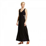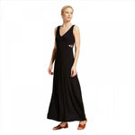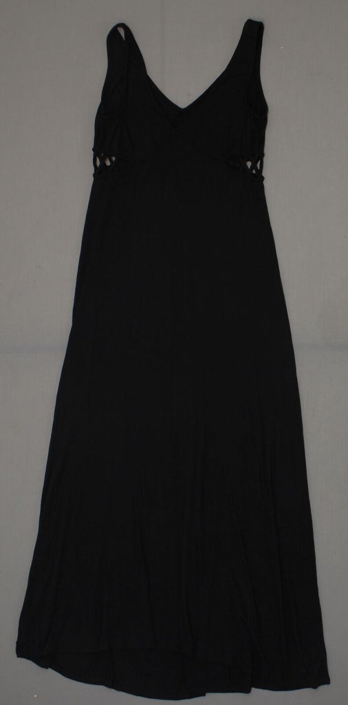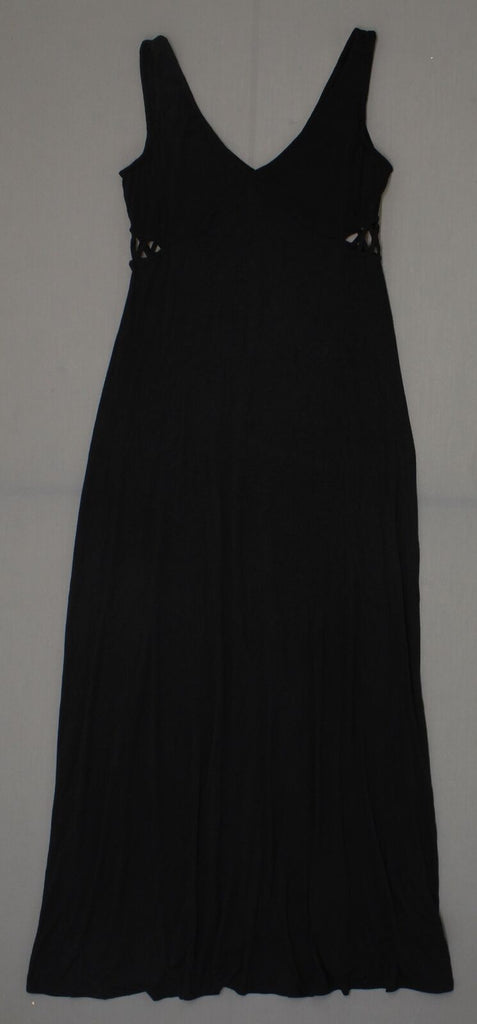 Flowy knit maxi dress with peekaboo windowpane side inserts.