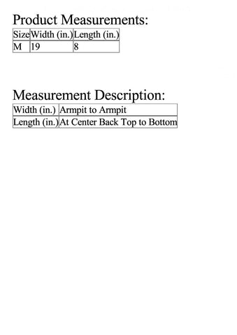 | Length (in.) | At Center Back Top to Bottom |
