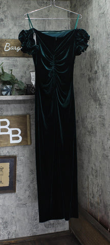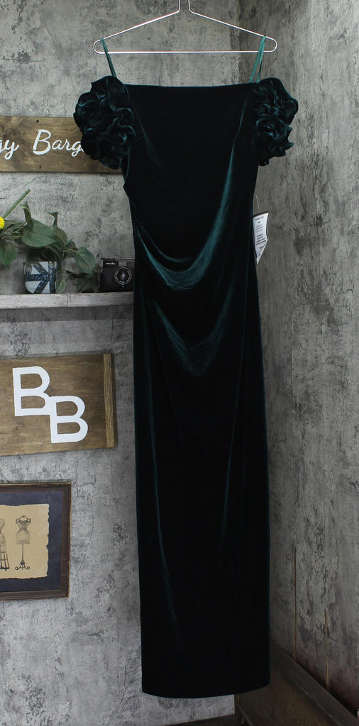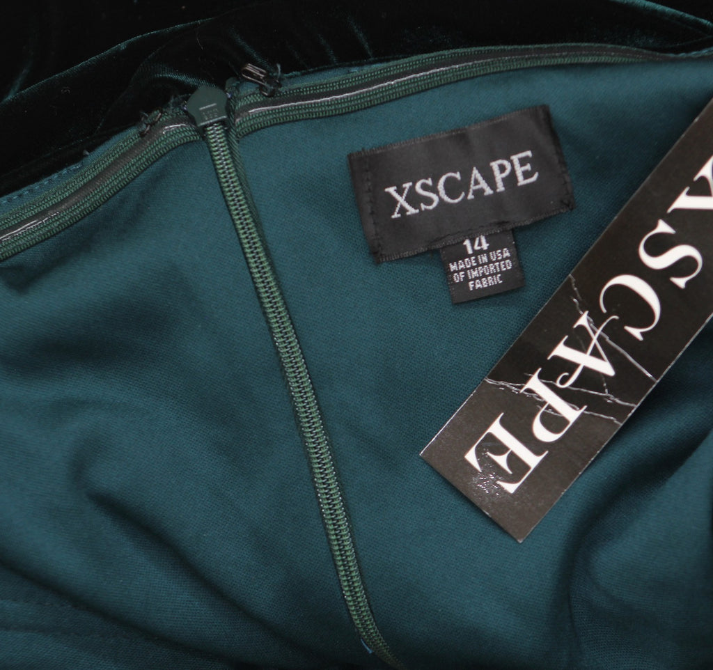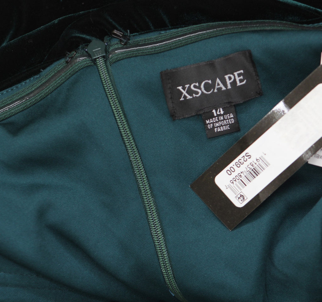 Fabric: Velvet Lining: Completely Lined Fastening: Concealed Back Zipper Design: Off-the-Shoulder, Ruffled Sleeve Details, Full-Length An impossibly gorgeous dress from Xscape, this velvet pick features a shoulder-baring neckline and beautifully ruffled sleeves.